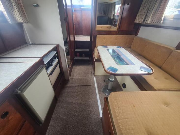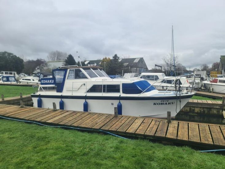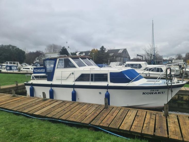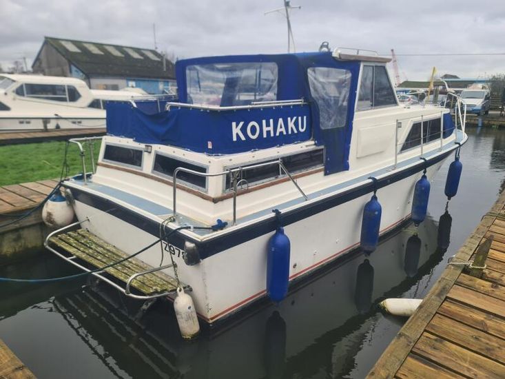 Colvic 28 Traveller - Circa 1985 - 2 Ford diesel engines on enfield sterndrives, 6 berth accommodation in two cabins , vanity basin in aft cabin, fridge, Flavel 2 burner hob, oven and grill, target log/speed, compass, TV, an excellent family boat with a separate aft cabin, ideal for extended stays aboard. Sold as seen