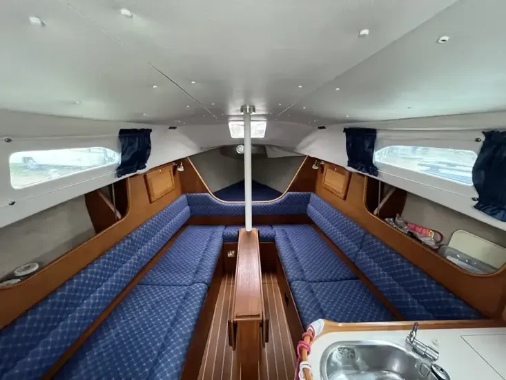 6 berths in open plan saloon / fore cabin plus separate aft cabin