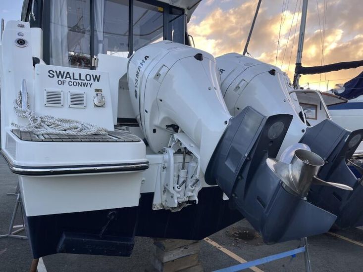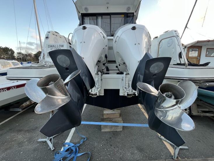 This Jeanneau Merry Fisher 1095 Coupe has to be been seen to be fully appreciated, with 3 cabins which is unique within its class. Category B rated 'Swallow' comes equipped with an extensive inventory including twin 300hp offshore Yamaha engines, Premier Pack, Comfort Pack, upgraded Garmin Navigation Pack, bow thruster, automatic Zipwake trim tabs, Webasto diesel heating, Seastar power steering, overhead lockers in galley, and more... This Merry Fisher 1095 was ordered new by the owner in August 2020 and first launched April 2021. She has been well cared for and fully serviced in line with Yamaha service intervals. Freshly antifouled October 2025 and lying Conwy Marina, North Wales.