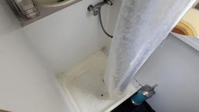 Wash basin behind shower