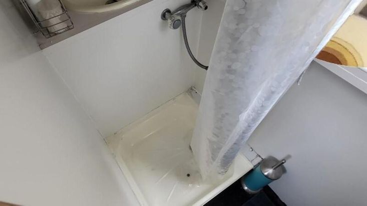 Shower tray with curtain