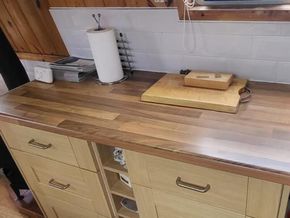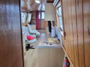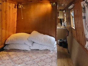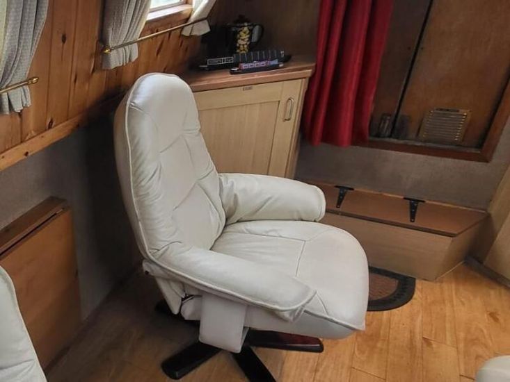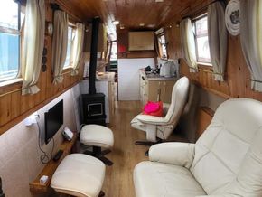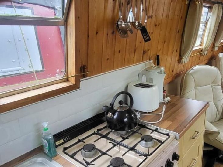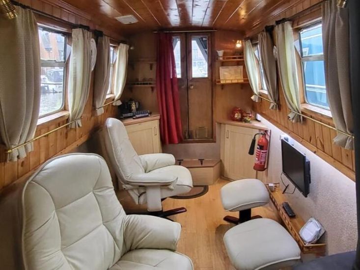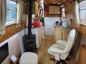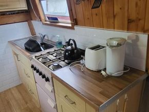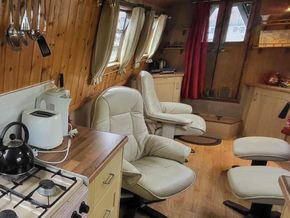 Lady Bee is a charming boat that is full of character. Her saloon enjoys comfortable leather arm chairs with footstool, and the boats solid fuel stove is mounted amidships, giving a better distribution of the heat throughout the boat. The galley is to boat sides and is fitted with a free standing oven with hob and grill, fridge and stainless steel sink with drainer. The shower room benefits from a pump-out toilet, shower cubicle and contemporary washbasin. The bedroom is at the stern end of the boat and has a fixed double berth, wardrobe and reading lights.