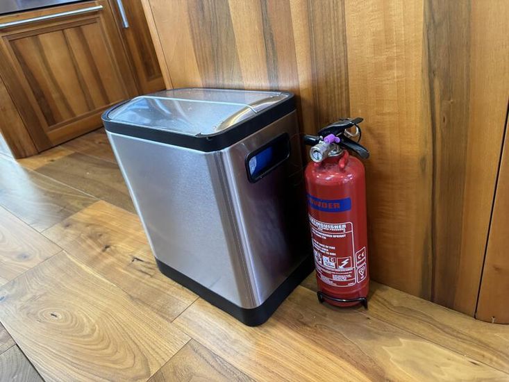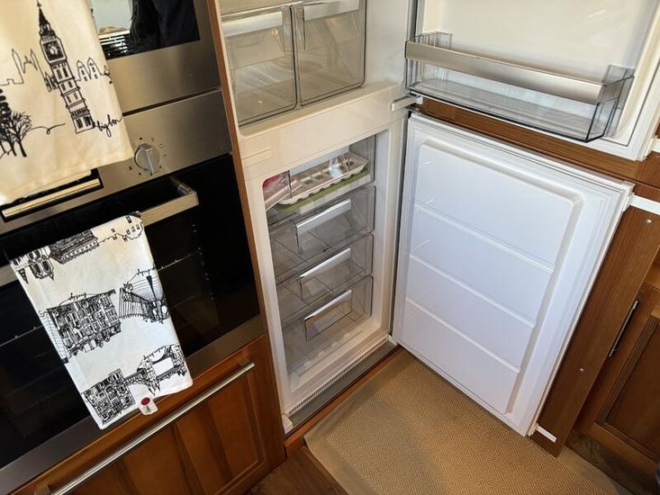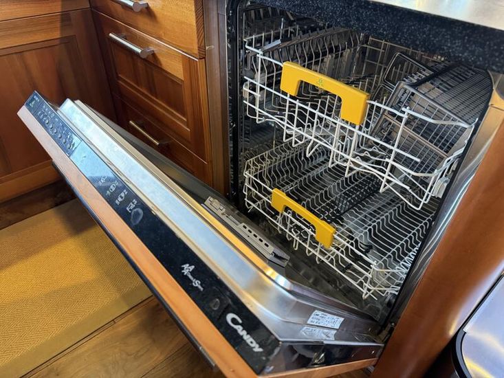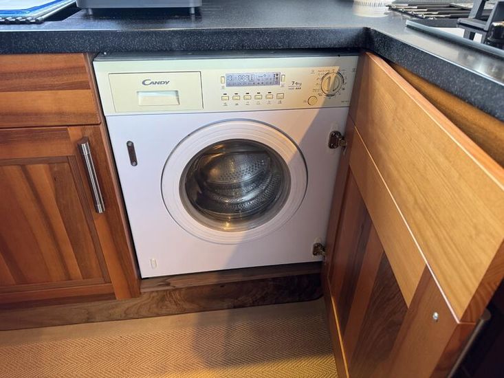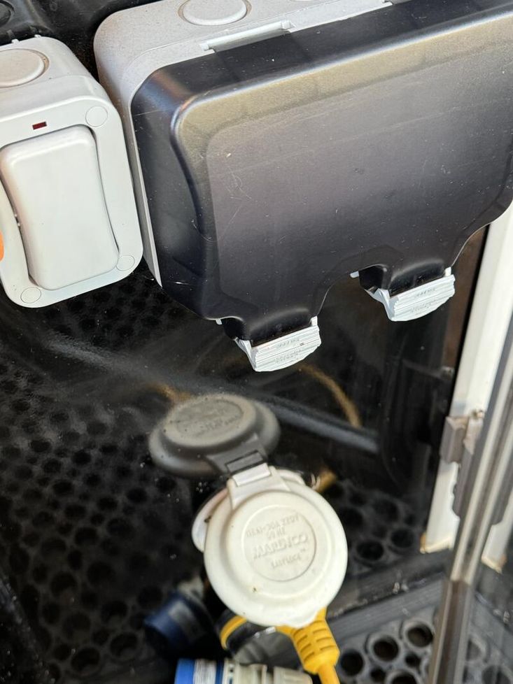240v – Shore power connection, mains RCD panel, plug sockets, Victron charger/inverter, 2 x smart TVs, full size integrated fridge & freezer, Candy washer/dryer, Candy dishwasher (unused), Candy double oven and microwave.