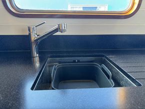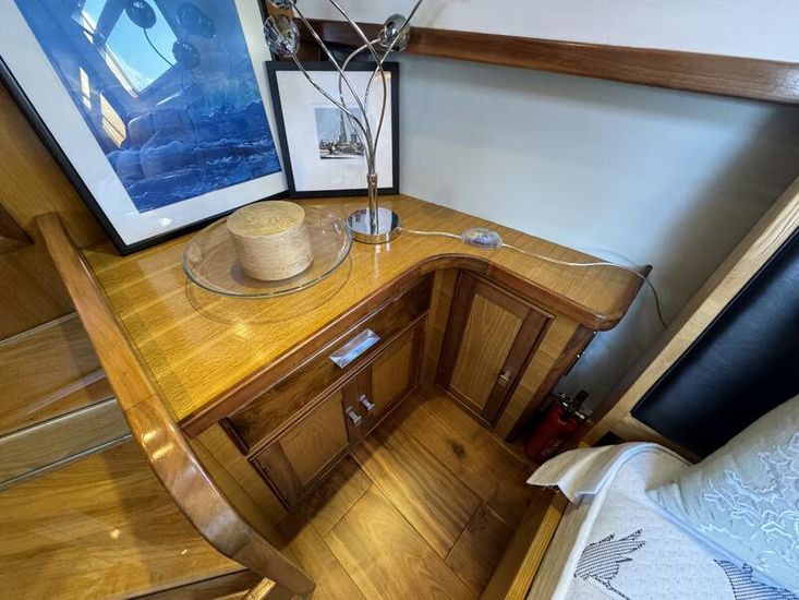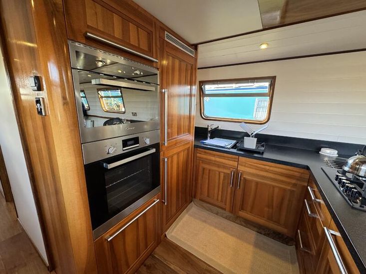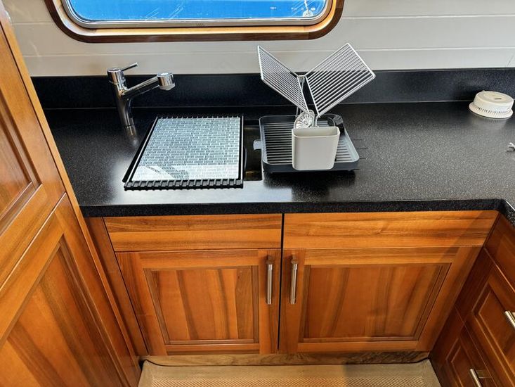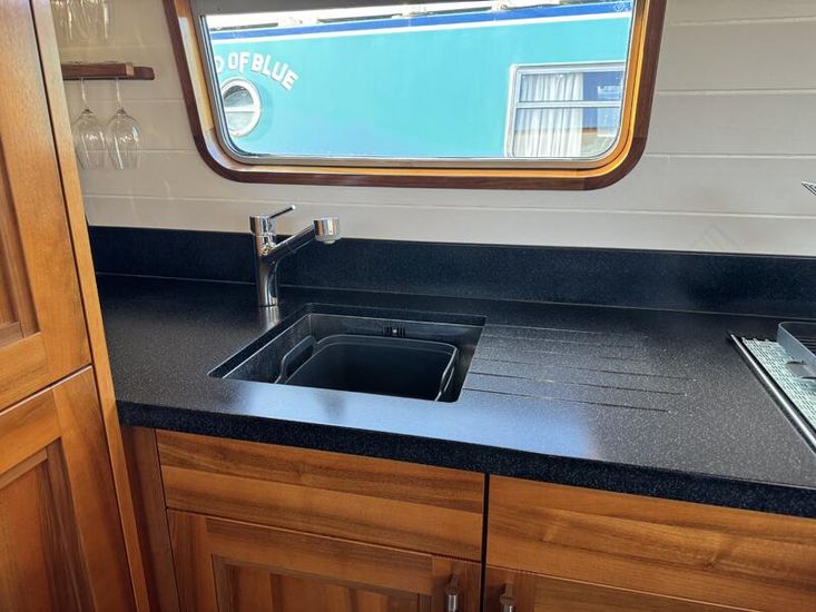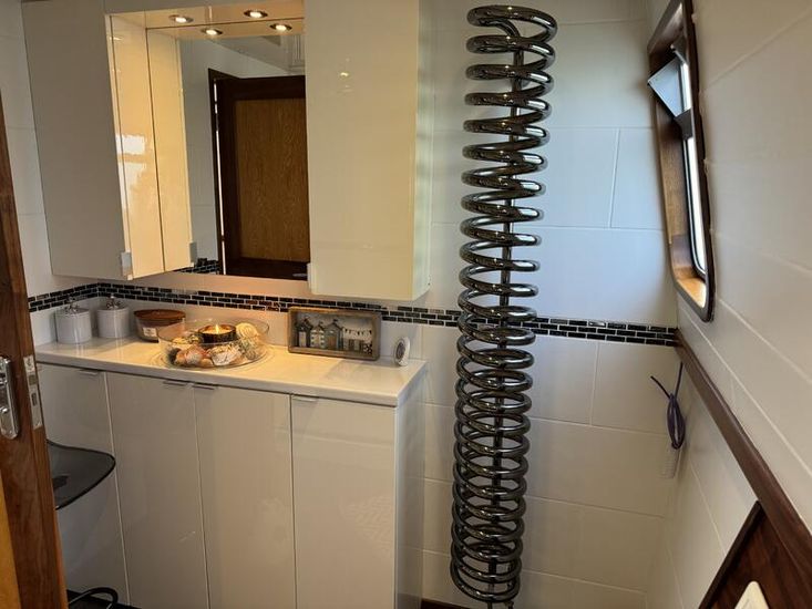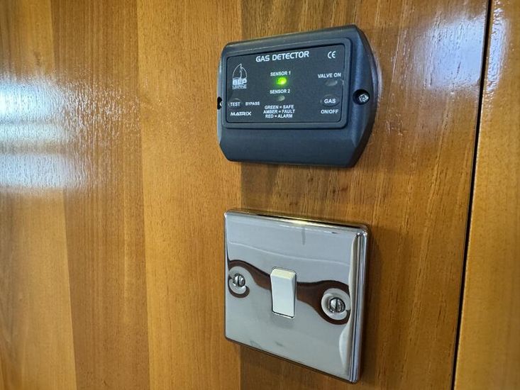 6kg LPG bottle, life ring, Hurricane diesel boiler (heating and hot water), three panel radiators and stainless steel ‘spring’ radiator, MASE 6.5kW diesel generator, General Ecology Sea Gull water purifying system, Philips black glass integrated LPG hob, forward cratch canopy and aft pram hood (both Titan), stainless steel fresh water tank, toilet waste tank, stainless steel SMEG kitchen sink, bespoke Blue Sea on board monitoring and warning alarms system, water and waste tank level gauges.