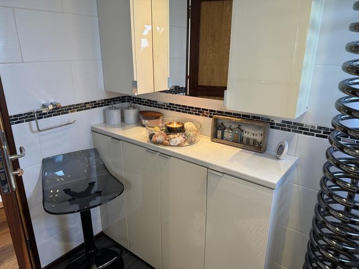 ‘Shard’, as you might imagine, is named after the iconic London building, and inspired by the bright, airy and light-filled structure; the owner commissioned the vessel as a reflection of the architectural masterpiece. The bespoke build was undertaken and project managed by IBTC (International Boat Building College) in Lowestoft using their most experienced and qualified shipwrights and the result is a simply stunning, modern, luxury, floating penthouse. Designed as a boat for life, the attention to detail is striking with design features that catch the eye at every turn, from the cityscape engraved glass screen to the huge spring radiator in the bathroom and the one and a half metre port side sliding hatch to mention just a few. The asking price does not fully reflect the costs involved in building ‘Shard’, but seeing is believing, so the only way to fully appreciate the unique style and quality of this vessel is to make an appointment to view! We are available 7 days a week for viewings by prior appointment only.