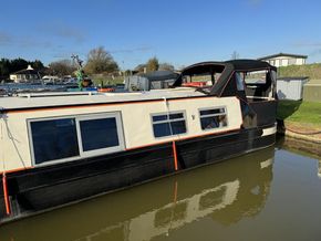 Welded steel plate construction – 12mm bottom plate, 6mm hull sides/decks, 5mm superstructure and roof by Sealake Marine of Lowestoft. Insulation is spray foam. On completion of the build, the boat was transported to Debdale Wharf where the hull was grit blasted, hot zinc metal sprayed and coated with two-pack epoxy resin to finish. The hull was re-blacked with bitumen paint in September 2023.