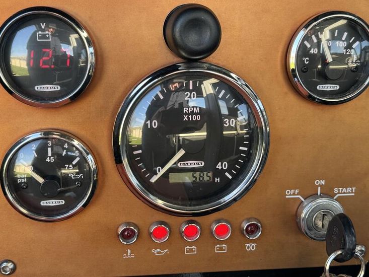 Barrus Shire 50hp diesel engine coupled to a conventional shaft drive via a PRM 2:1 reduction gearbox. Single lever control. Temperature, voltage, oil pressure and RPM gauges. Recorded engine hours 58.5. Engine and gearbox serviced 30/10/2023.