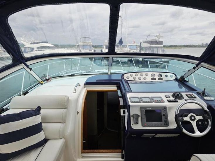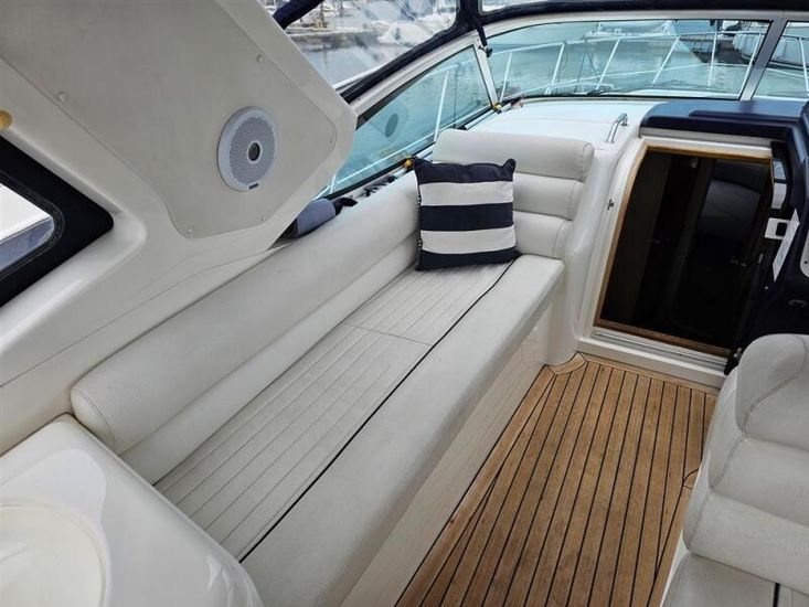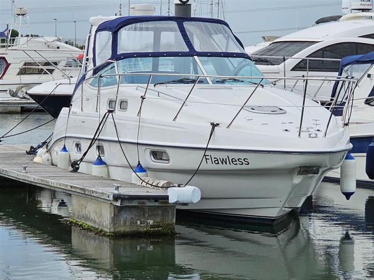 Origin Yachts are pleased to offer “Flawless”, a well-presented Sealine S34 family sports cruiser, powered by twin Volvo Penta KAD32 diesel engines delivering a top speed of approximately 30 knots. Stern drives with bow thruster assistance provide confident and easy handling.
